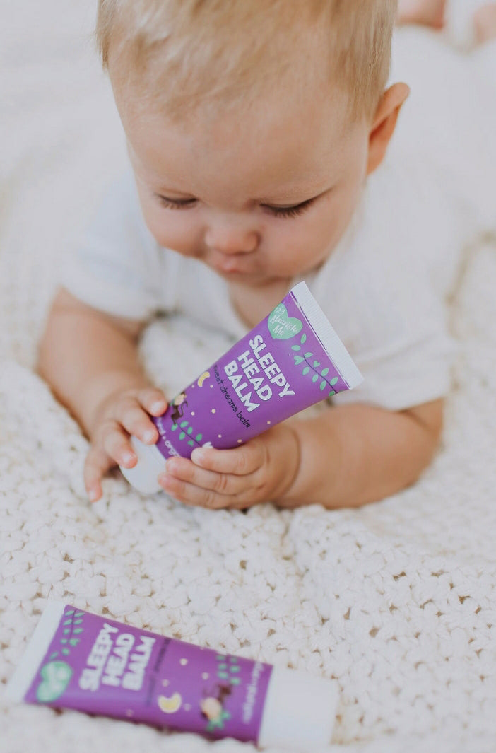 - Sleepy Head Balm is only suitable for ages 6 months and older due to the essential oil content in the product. It is not recommended to have any essential oil use on babies under this age.