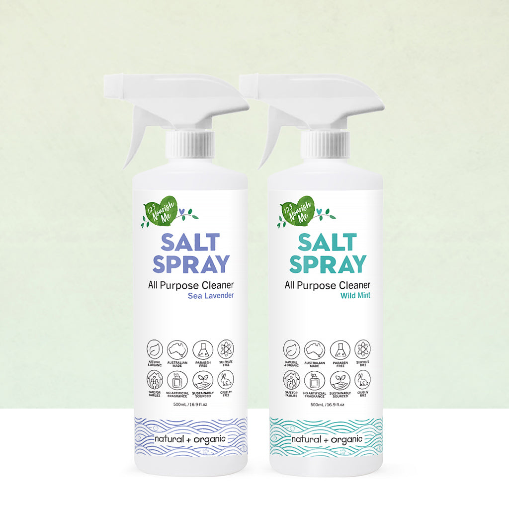 SALT SPRAY All Purpose Cleaner (Sea Lavender & Wild Mint) are powerful all purpose sprays designed to deep clean using the mineral salt along with extracts to leave surfaces feeling ultra clean with smelling amazing.