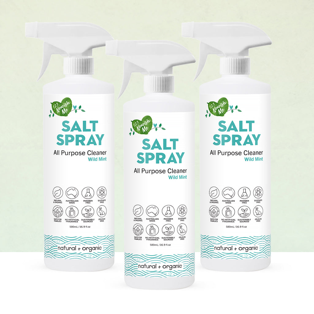 SALT SPRAY All Purpose Cleaner (Wild Mint) is a powerful all purpose spray which is designed to deep clean using the mineral salt along with extracts to leave surfaces feeling ultra clean.  Minty Fresh!  Grab triple to goodness!