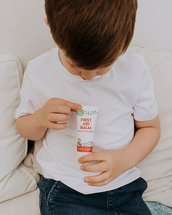 Our customers LOVE our First Aid Balm. We believe it’s the best First Aid Balm for babies, toddlers and big kids. However, for serious medical injuries or skin conditions please consult your healthcare professional or doctor. For any non-medical questions or information, please drop us a line at any time, and we’re always excited to speak to our beautiful customers!